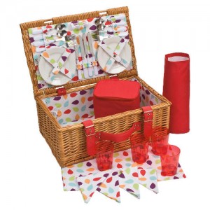 More traditional but with a funky twist, the Carnival Pip 4 Person Picnic Basket (£70) made from retro wicker nods towards a romantic date on the riverbank. The picnic equivalent of sexy underwear beneath twin set and pearls, inside a quirky apple pip style polka dot lining with matching napkins co-ordinates with red insulated food cooler, salt and pepper shakers and acrylic tumblers.