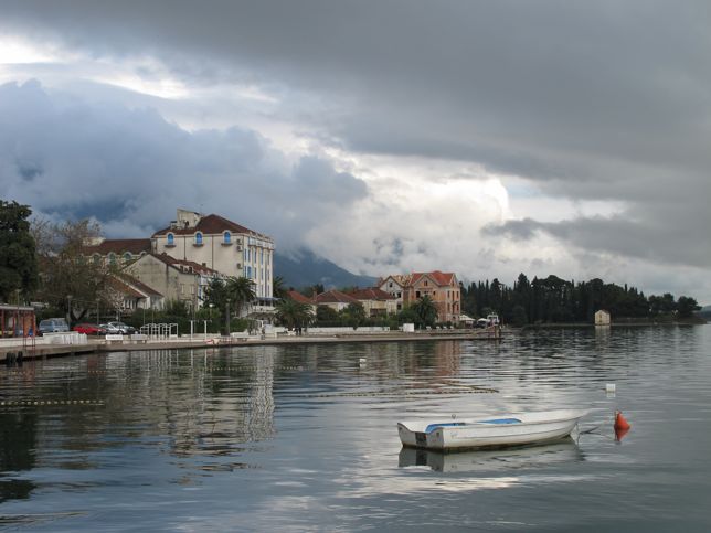 Before another storm arrived. You can see it coming in this picture. When it rains in Montenegro, pavements turn into rivers within minutes.  They must have good drainage though as it seems to subside quickly.  Until the next time…