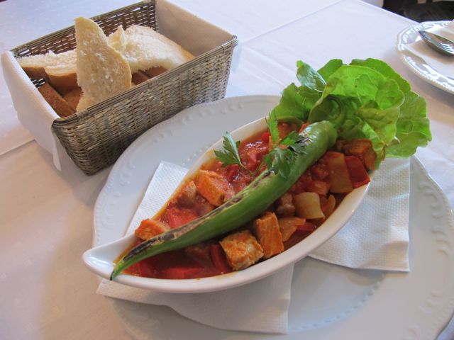 With a limited choice of venues still open, we took our lunch in the strangely grand Primavera Hotel. The meals were simple although presented with great care that the style of food didn’t really live up to.  My husband ordered pork stew (above) which arrived with a giant green chargrilled chilli pepper.