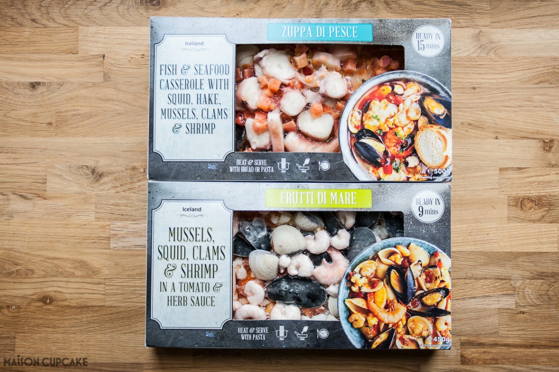 Frutti Di Mare frozen fish selection of mussels, squid, clams and shrimp in a tomato and herb sauce (£3.50 a box);