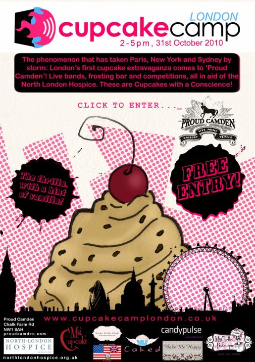 Cupcake Camp London is a volunteer-run baking event that has already taken place in Paris, New York and Sydney. A popular means of raising money for charity, previous Cupcake Camps have attracted up to 1,000 participants and thousands of pounds for good causes. Cupcake Camp London, London’s first cupcake extravaganza, hits town on 31st October, 2010 and will be raising money for the North London Hospice.