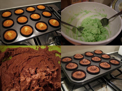A close up of the finished green (vanilla) cupcakes
